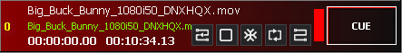 A clip added to the clip list with a file that does not yet exist in the specified source directory can be recognized by a CUE button with a red border: